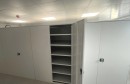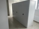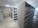В рамках проекта применены двухсторонние стеллажи, обеспечивающие эффективное использование полезной площади помещения. Размещение стеллажей в центральной зоне позволило организовать доступ к хранимым материалам с обеих сторон, что повысило удобство эксплуатации и ускорило рабочие процессы.
