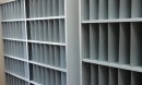 Разделители делят полку стеллажа на ячейки хранения.
